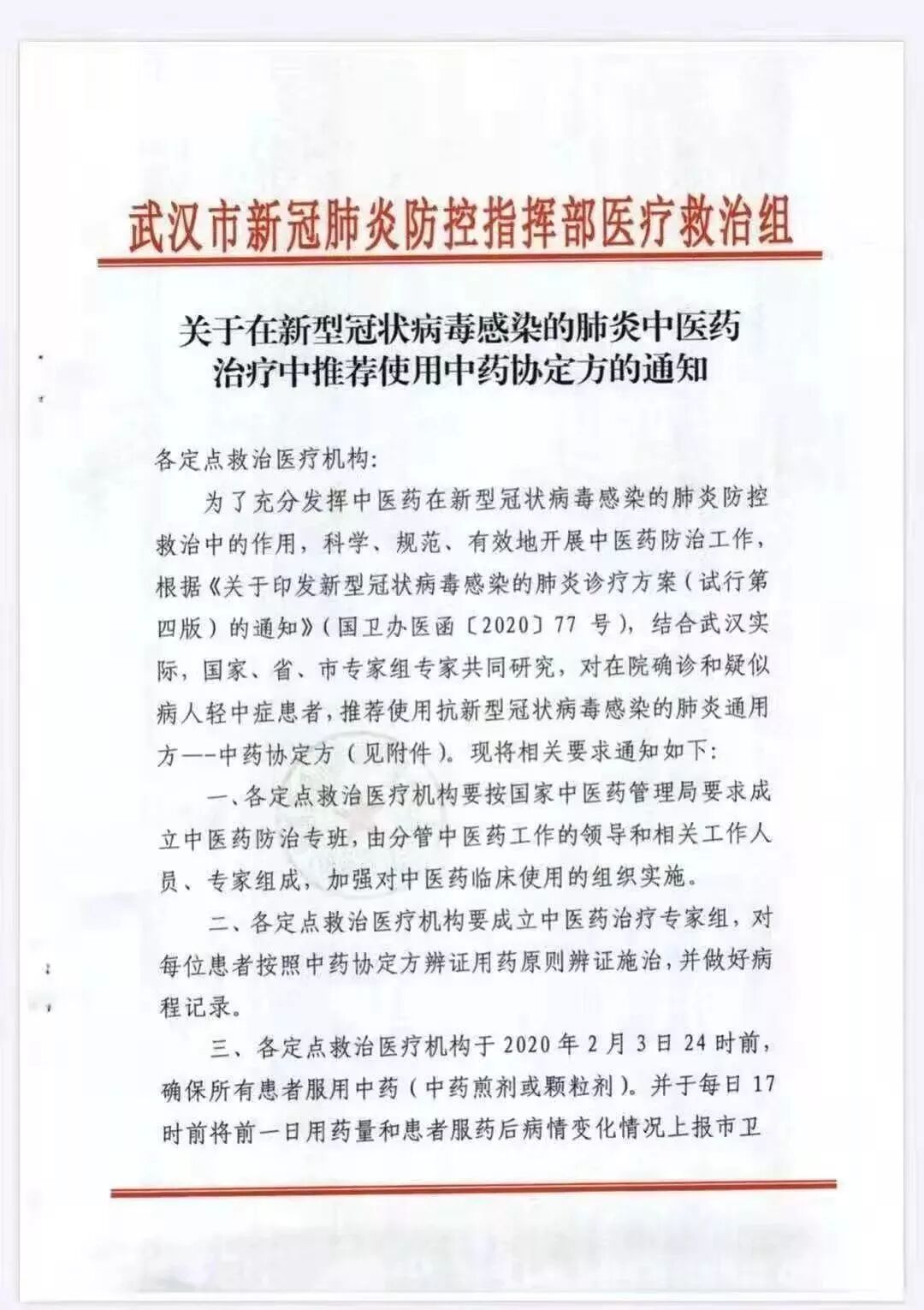 2月2日,武汉市新冠肺炎指挥医疗救治组发布了更新的中药协定方案。看下图。