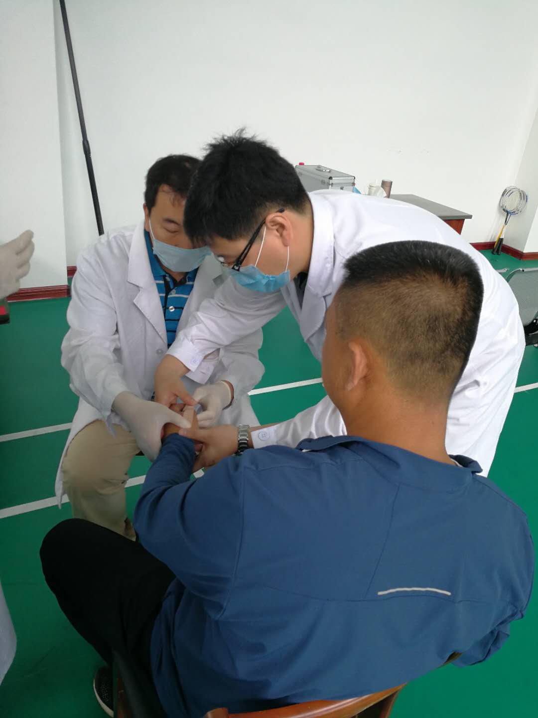 济南市全民中医健康管理中心主治中医师陈彤主任亲临现场。陈主任利用从事中医骨伤工作二十余载的丰富临床治疗经验,针对警体运动员在训练中出现的运动损伤、关节疼痛、运动疲劳等问题进行了详细诊断,并结合针灸按摩、被动运动牵拉、贴扎术等方法对每位运动员进行了专业的治疗,对帮助他们减轻运动伤病、消除运动疲劳、提高身体机能、改善运动能力起到了非常好的效果。